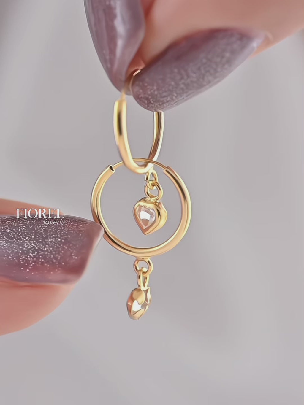 Candongas en oro de 18 kilates con delicado dije en forma de corazón con circones rosados. Un diseño sutil y femenino que combina el brillo del oro con el encanto del color, perfectas para regalar o complementar tus looks diarios con un toque romántico.