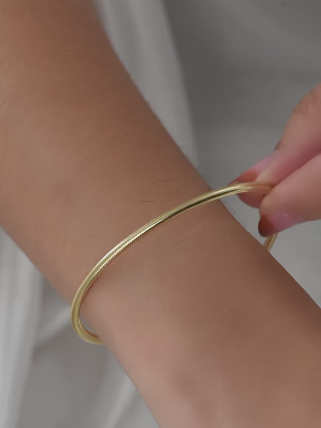 Diseño minimalista, ajuste perfecto. Este pulso elástico en oro 18 kilates combina elegancia con comodidad, adaptándose fácilmente a tu muñeca sin necesidad de cierres. Ideal para el uso diario o para complementar un look más sofisticado, su acabado brillante y su estructura flexible la convierten en un básico imprescindible.